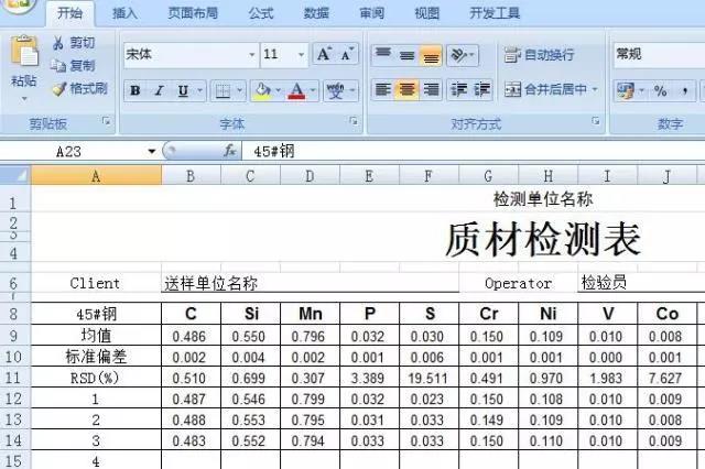 即可生成excle的“質(zhì)材檢測(cè)表”,可用于打印(注:以下表中詳細(xì)數(shù)據(jù)并不能作為實(shí)際參考)